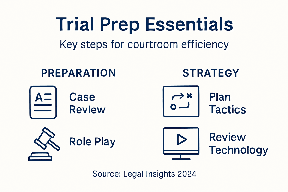 Every seasoned litigator knows that meticulous trial preparation is the bedrock of courtroom success. In major American cities, where complex cases and tight deadlines collide, efficient planning and strategic organization set top-performing lawyers apart. By mastering comprehensive case analysis and leveraging targeted support from pretrial services and expert consultants, you gain a decisive edge in both presentations and trial logistics. Effective trial prep transforms challenging legal matters into controlled, persuasive narratives that resonate with judges and juries.
